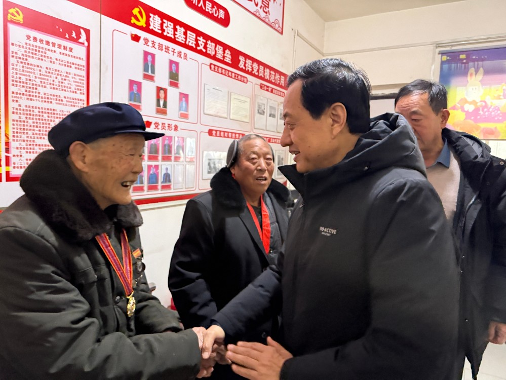 王树山常务副会长一行首先来到宝丰县商酒务镇皂角树村,重点看望慰问了四位老人。他们中有参加过抗美援朝战争的96岁高龄的老战士,有超五十年党龄的老党员,有病故军人家属等。王树山关切询问老人们的身体状况和家庭生活,送上慰问金及羽绒服、米面油等生活物资,并致以新春祝福。